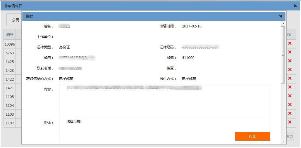 4. 管理員可打印相關的申請和回復信息